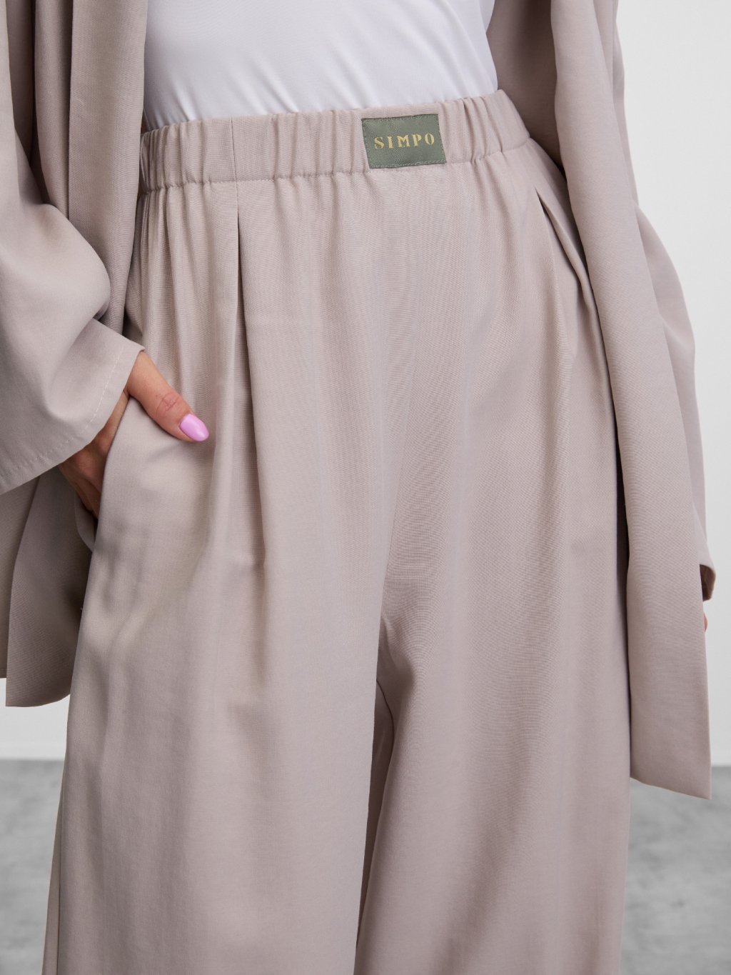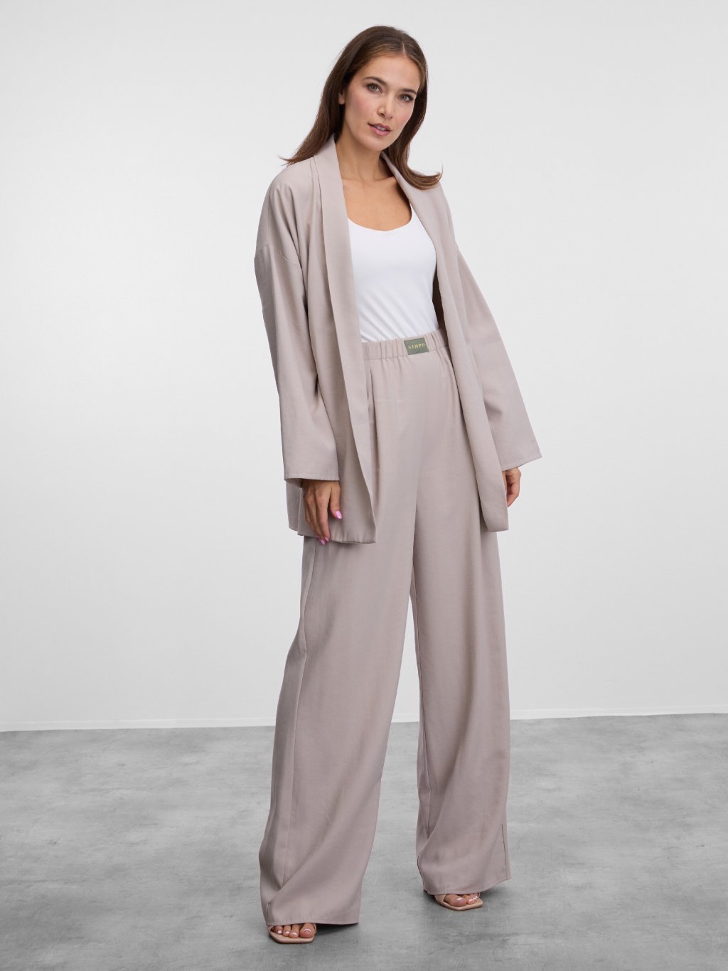 Kolekce Vivien je nadčasová minimalistická edice SIMPO, která se skládá z kalhot, kimonového saka, vesty na knoflík a polodlouhých kraťasů/bermud. Všechny kousky jsou hravě kombinovatelné. V létě sáhnete po elegantních kraťasech, na podzim a v zimě po kalhotách a kimonu. Všechny kousky kolekce Vivien mají vyšší gramáž v materiálovém složení 100% viskóza, a to navíc s luxusním sametovým povrchem. Kalhoty jsou v pase na gumu, na přední straně mají dva sklady pro zachování krásně širokého a slušivého střihu. Tento model má navíc ležérní kapsy. Délku kalhot můžeme na přání upravit - prodloužit či zkrátit. A stejně tak můžeme vynechat kapsy, pro případ, že je nemáte ráda.