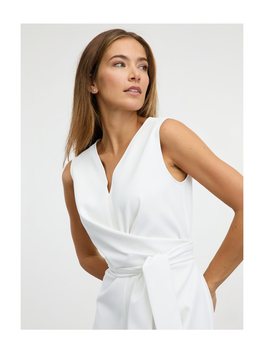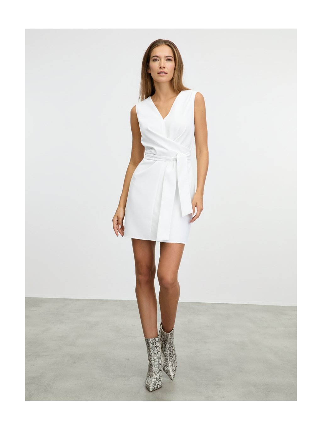 SIMPO bílé mini šaty Bow s výstřihem do V