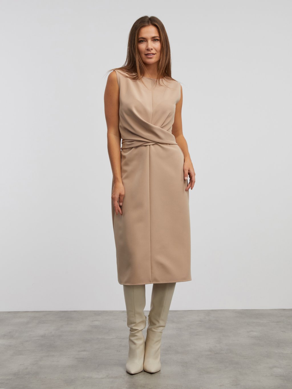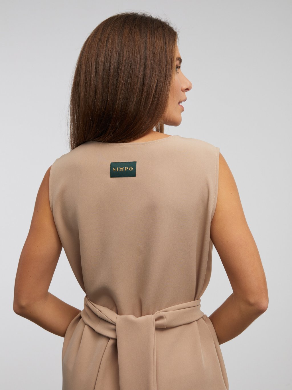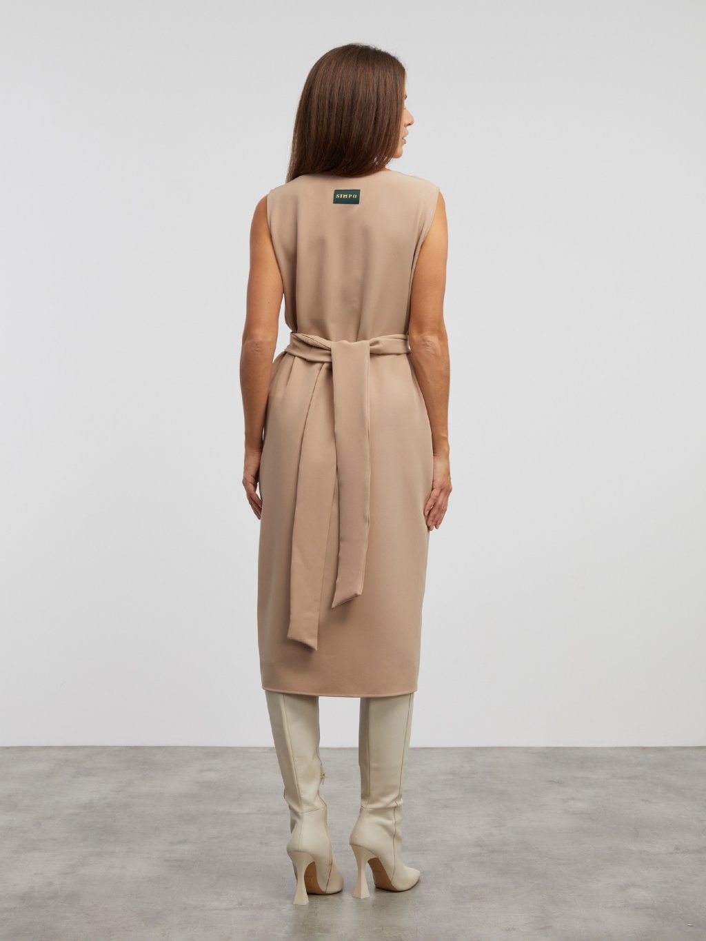 SIMPO cappuccino dlouhé šaty Bow bez rukávů