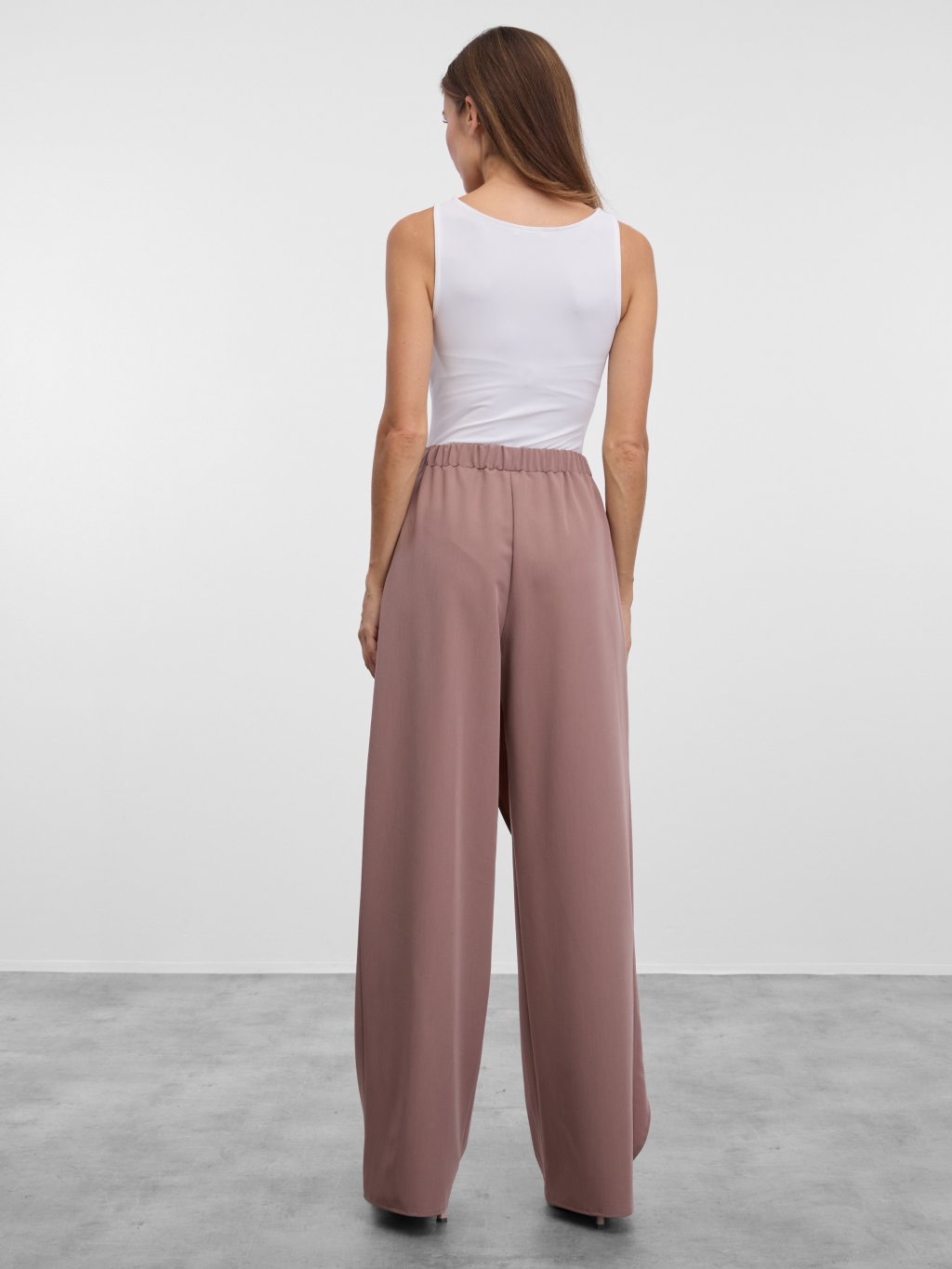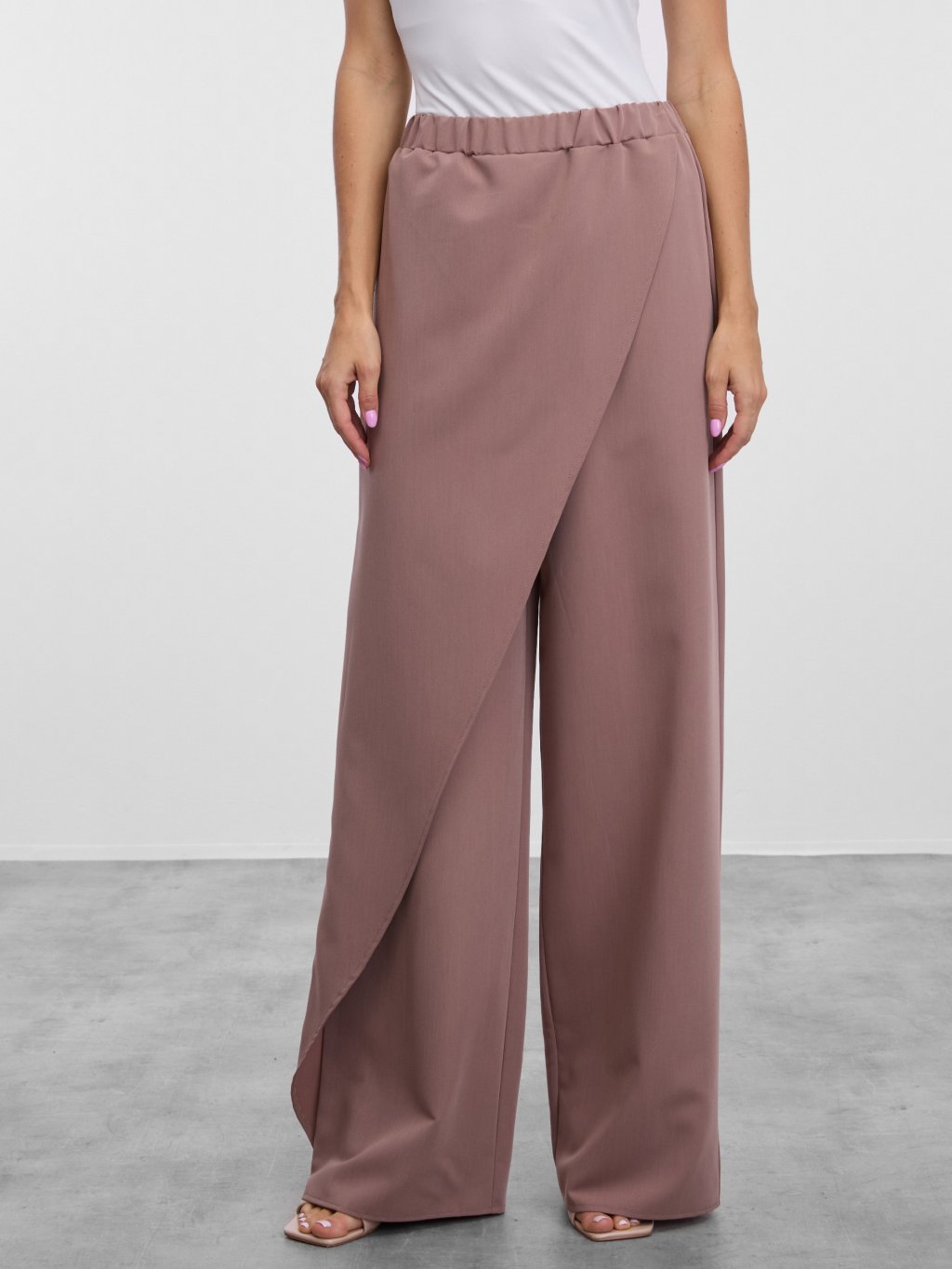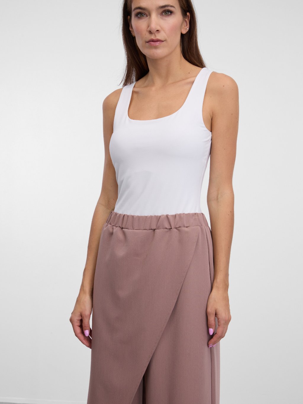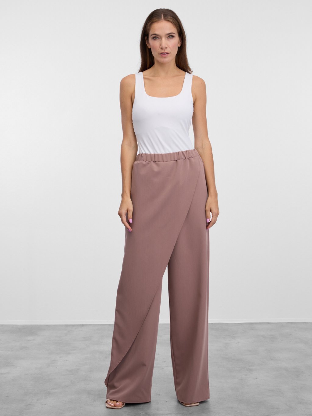 Kalhoty Sijonas s asymetrickou sukní vpředu v teplé hnědé barvě.