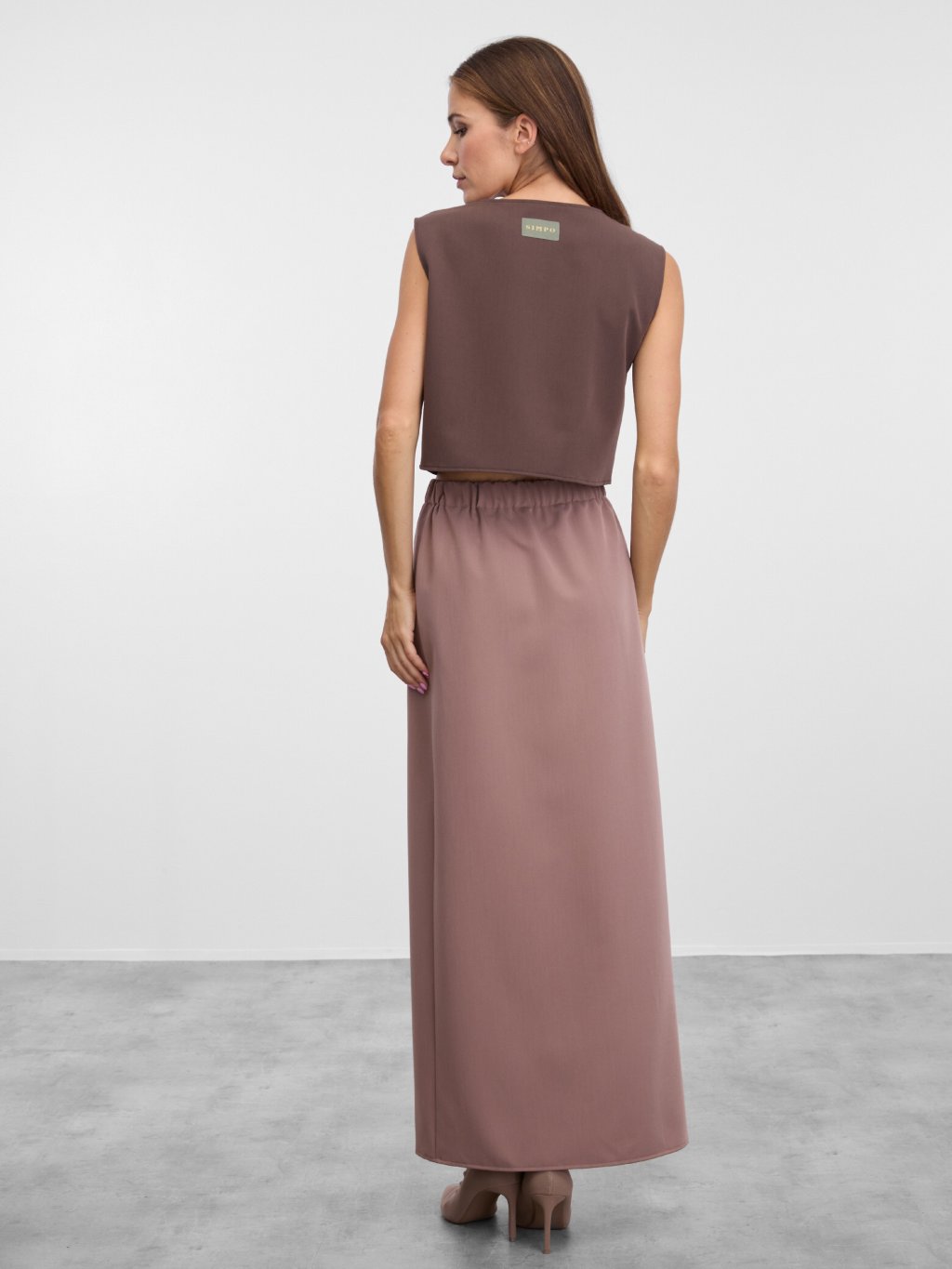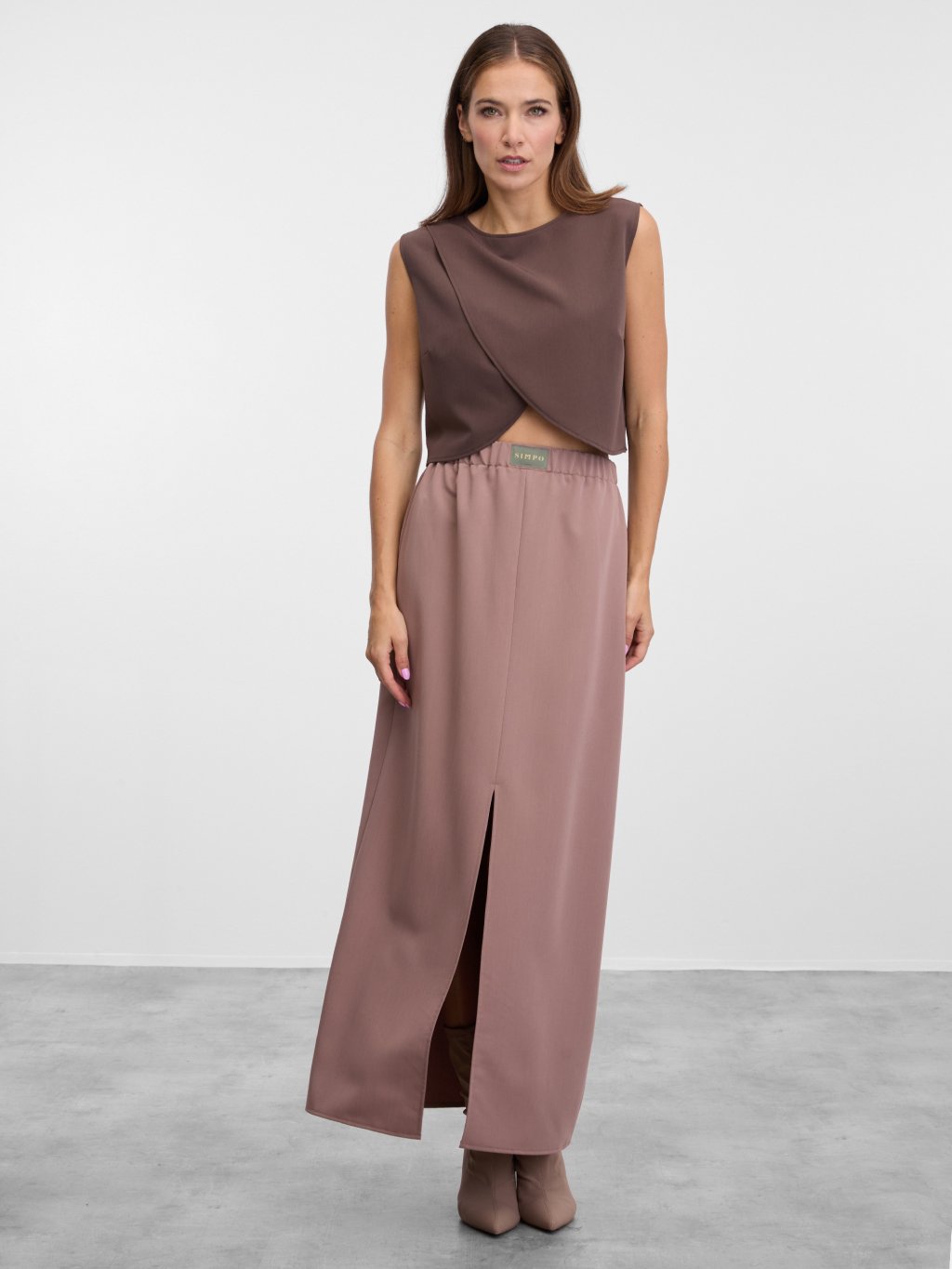 Tato sukně SIMPO nazvaná Alto je jednoduše velká pohodářka. Rovný střih nikde neškrtí, nezařezává se, je lichotivý k postavě. Vpředu je šev, na který navazuje vysoký rozparek, což opticky prodlužuje postavu. A v pase je pohodlná guma. Sukně je slušivá k lodičkám nebo kozačkám, ale i ležérně k sandálům či teniskám. Prostě kamkoliv, kdykoliv. Můžete kombinovat třeba s topem Firo. Délku vám na přání rádi upravíme.