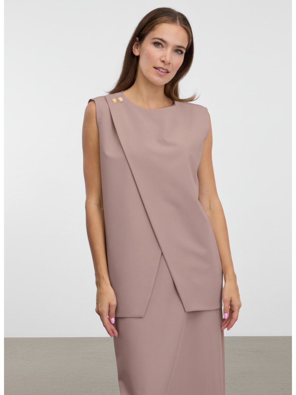 Luxusní, dvojitě podšitý top s ozdobnými knoflíčky na ramenou.