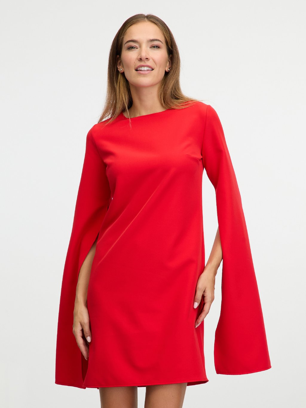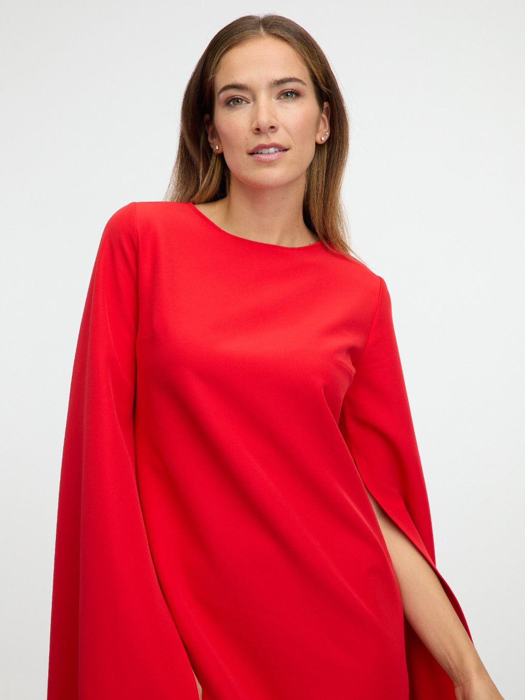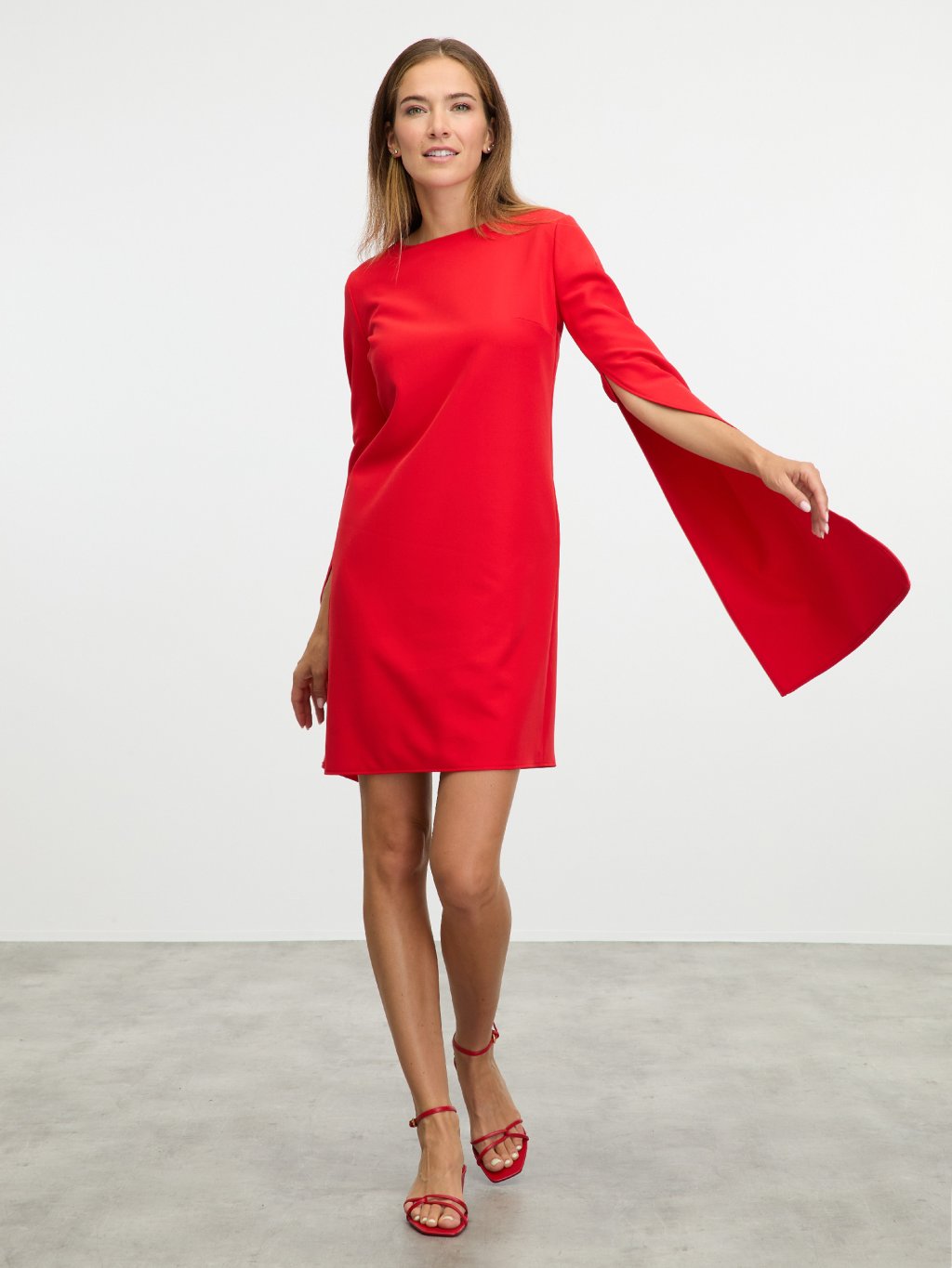 Slušivé červené šaty SIMPO s efektními rukávy.