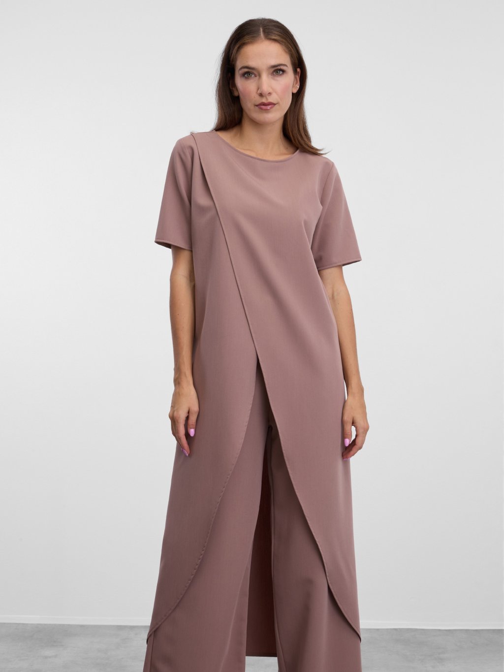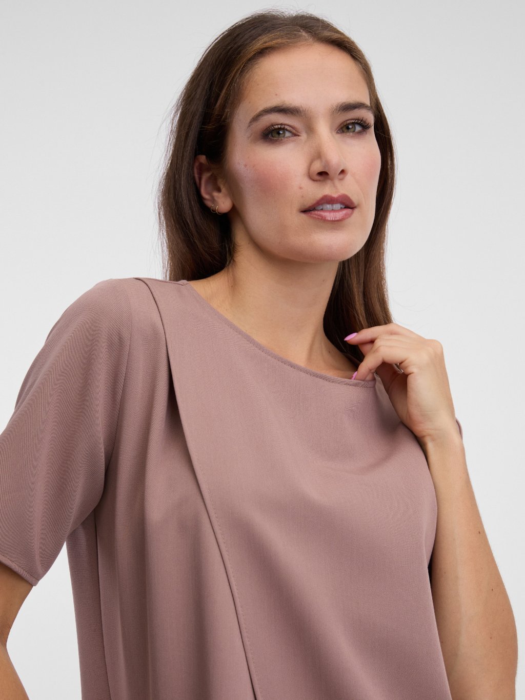 Tunika je dlouhá, s efektním překřížením, které ale zakrývá bříško.