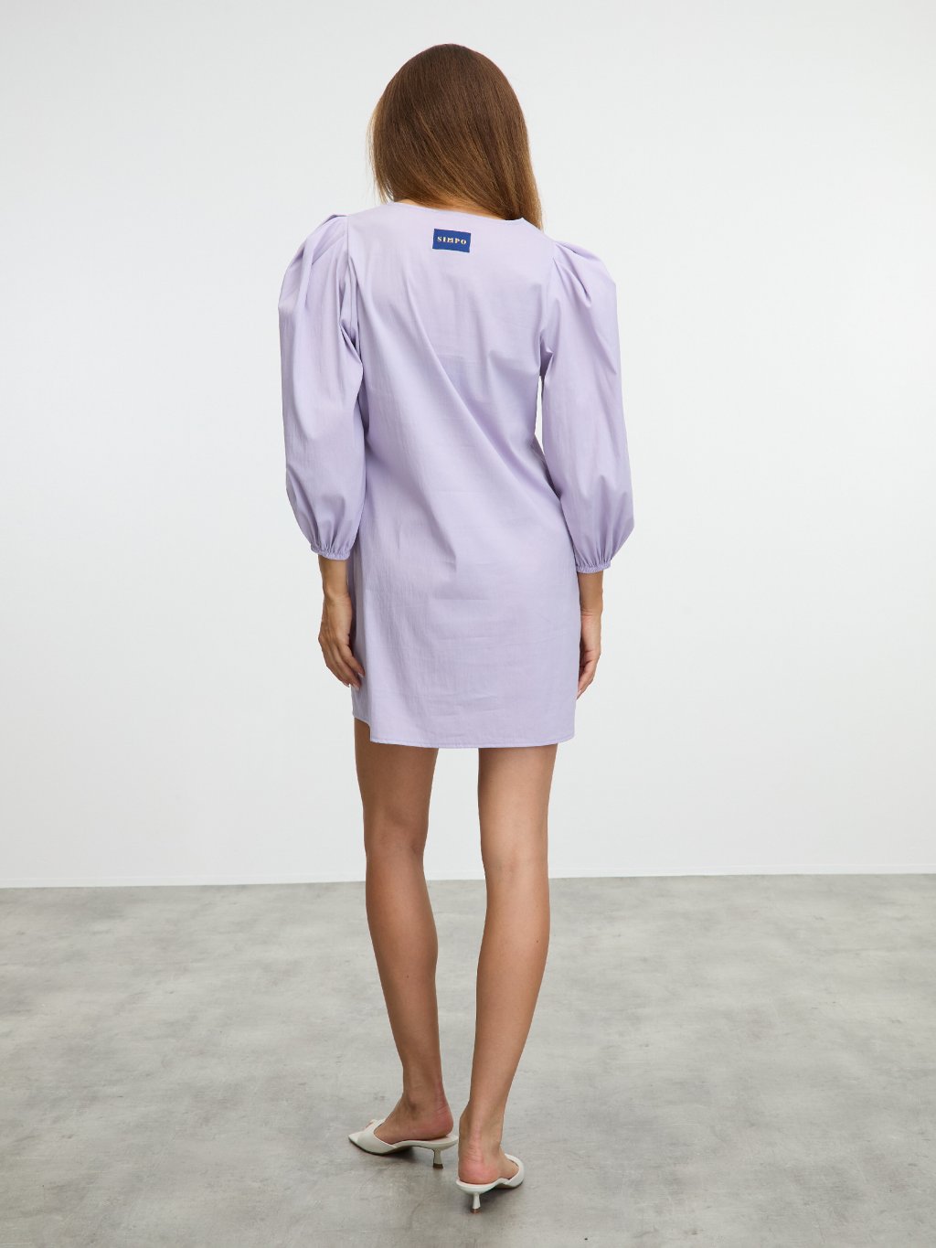 Bavlněné světle fialové šaty SIMPO s balónovými rukávy.