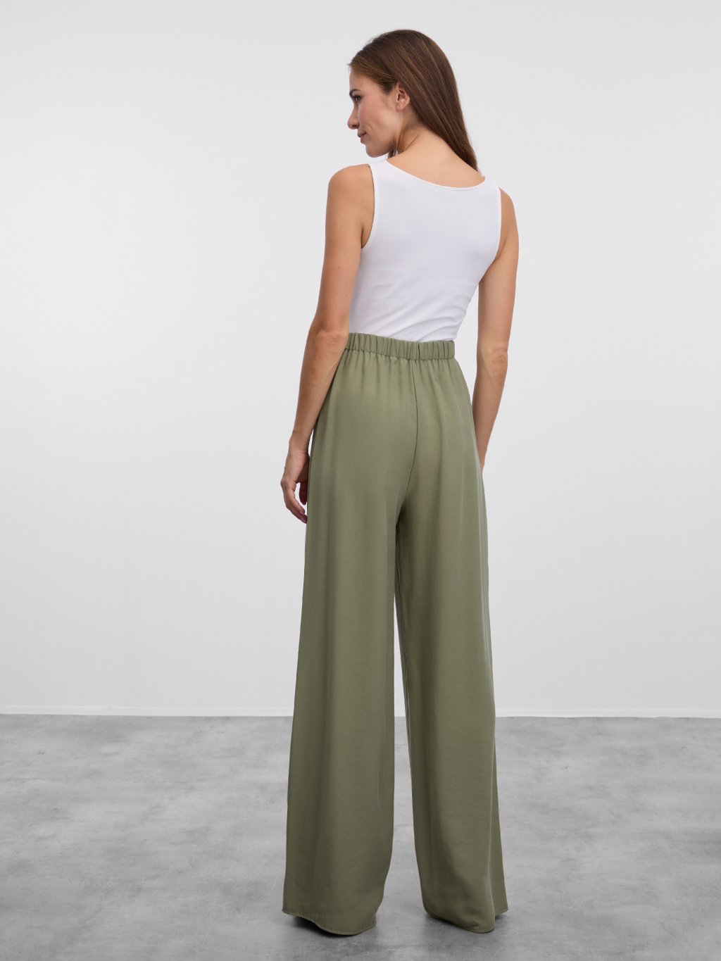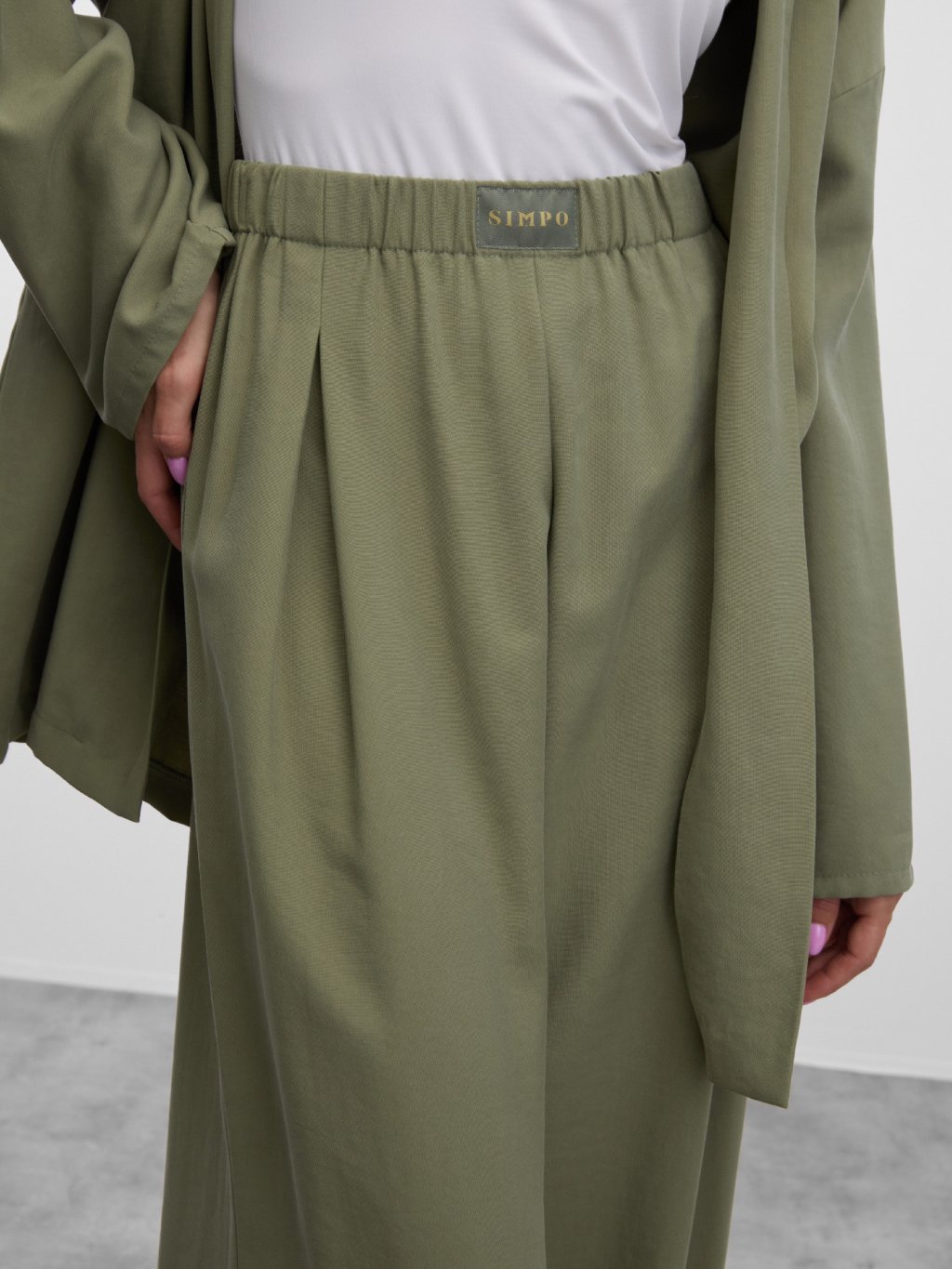 Kolekce Vivien je nadčasová minimalistická edice SIMPO, která se skládá z kalhot, kimonového saka, vesty na knoflík a polodlouhých kraťasů/bermud. Všechny kousky jsou hravě kombinovatelné. V létě sáhnete po elegantních kraťasech, na podzim a v zimě po kalhotách a kimonu. Všechny kousky kolekce Vivien mají vyšší gramáž v materiálovém složení 100% viskóza, a to navíc s luxusním sametovým povrchem. Kalhoty jsou v pase na gumu, na přední straně mají dva sklady pro zachování krásně širokého a slušivého střihu. Tento model má navíc ležérní kapsy. Délku kalhot můžeme na přání upravit - prodloužit či zkrátit. A stejně tak můžeme vynechat kapsy, pro případ, že je nemáte ráda.