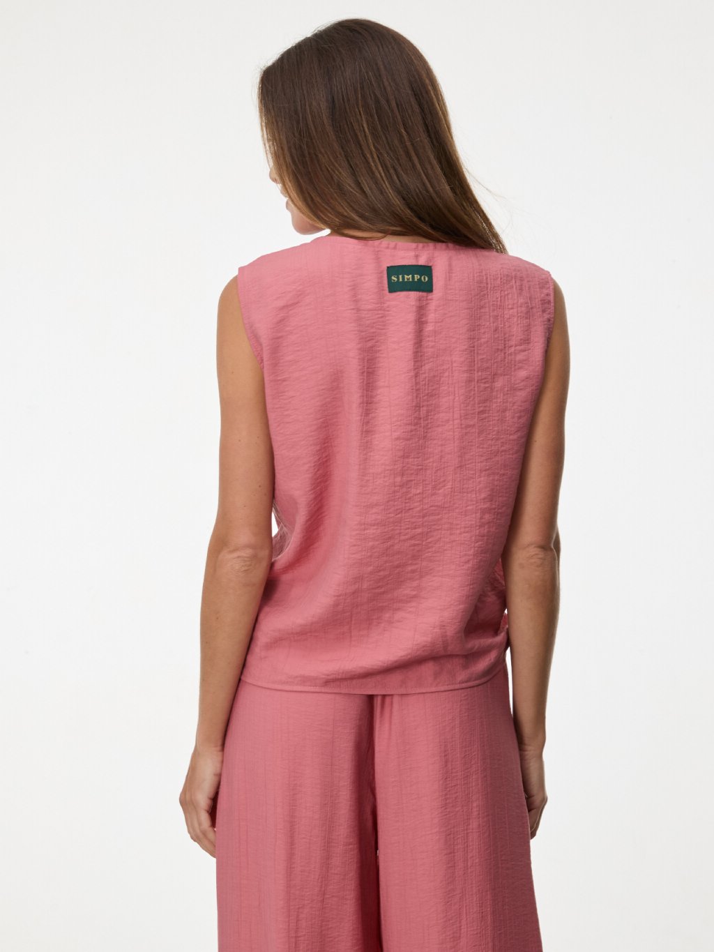 Vzdušný viskózový top s hlubším výstřihem a nastavitelným řasením na předním díle.