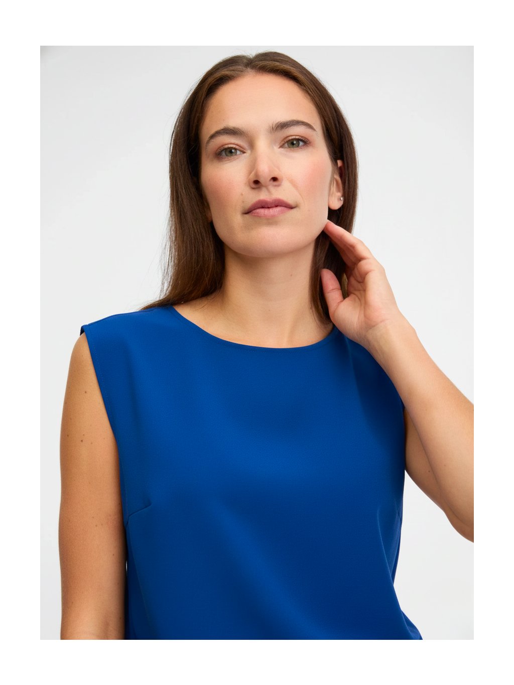 Příjemné pohodlné triko SIMPO bez rukávů. Střih je rovný, aby se top hezky nosil ke kalhotám s vyšším pasem. Bude se vám skvěle nosit do práce i na volný čas. Nebo třeba k sukni Luna - tam můžete top i zastrčit do gumy v pase.