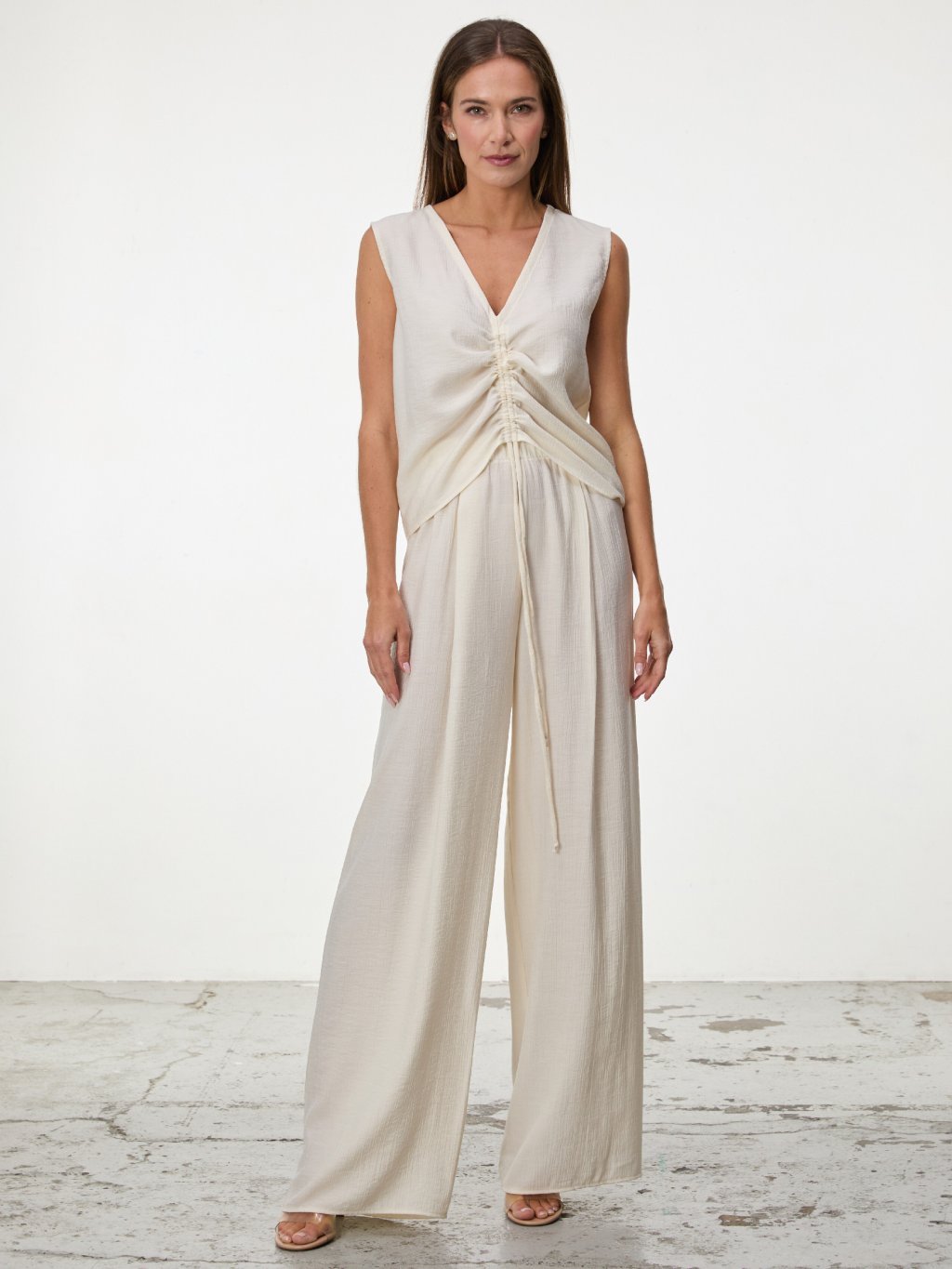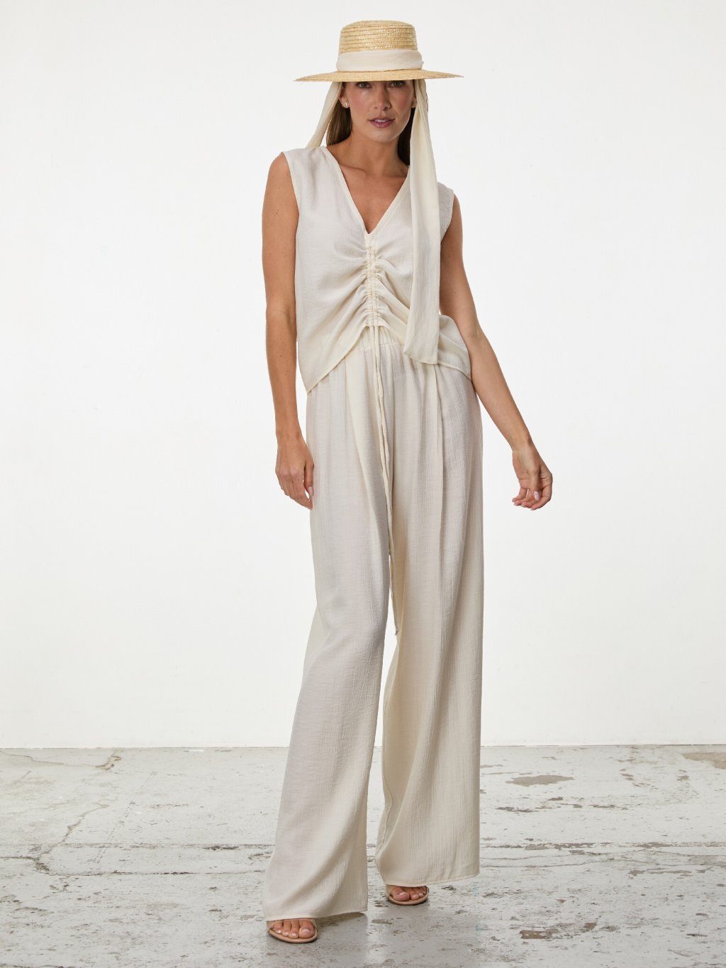 Kalhoty si můžete pořídit samostatně, ale také sladit s nějakým topem z kolekce Sands. Co si vyberete vy? Asymetrický top s vycpávkami pro elegantní dny, nebo jednoduchý crop top? A co takhle plážovou košili nebo ležérní vestu? Vše je ve stejné barvě a stejném materiálové složení. Jednoduše nekonečné možnosti outfitů v jednom stylu.