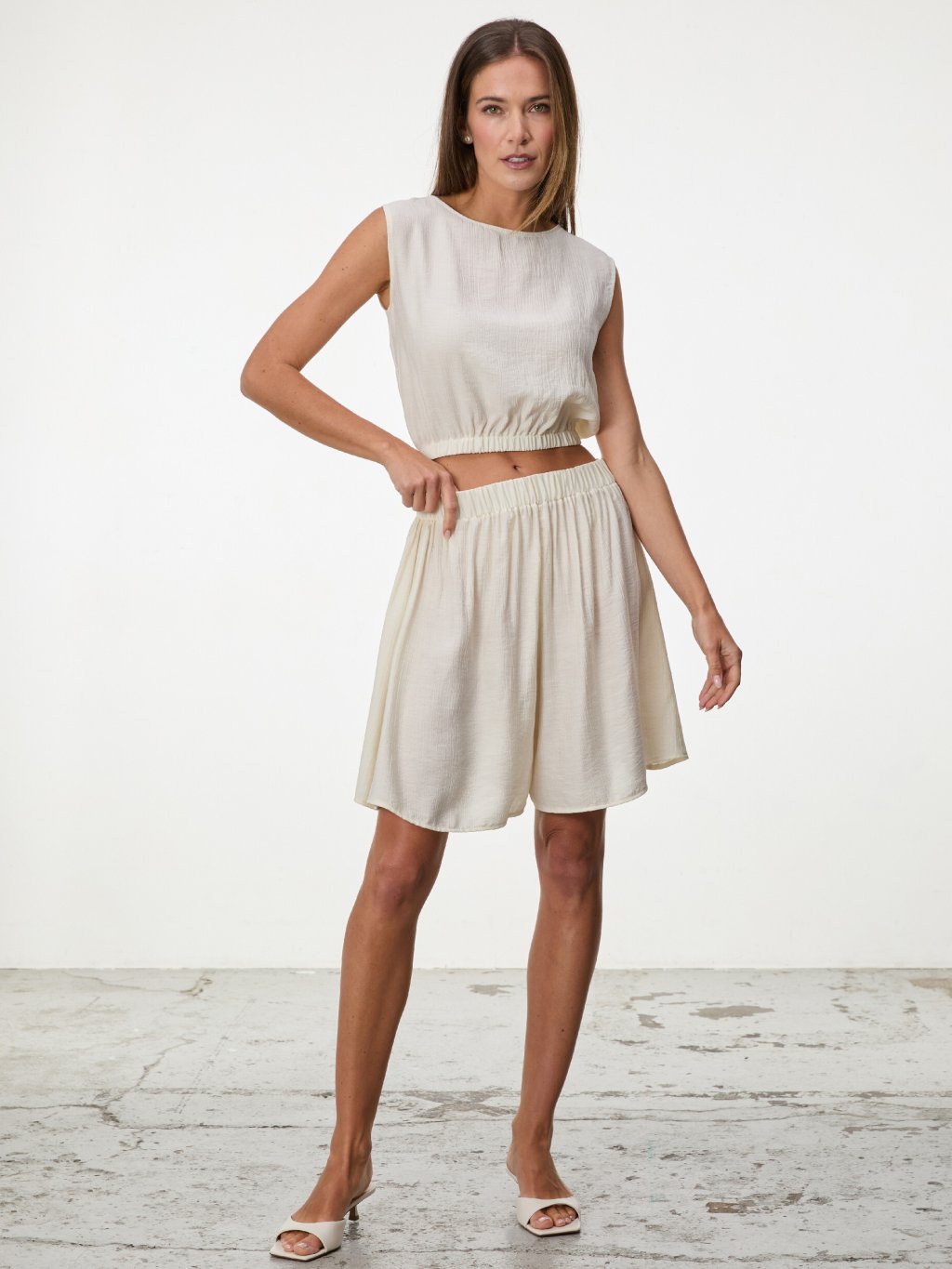 Báječný crop top z mačkané viskózy, který je ideálním doplňkem k sukni Sands.