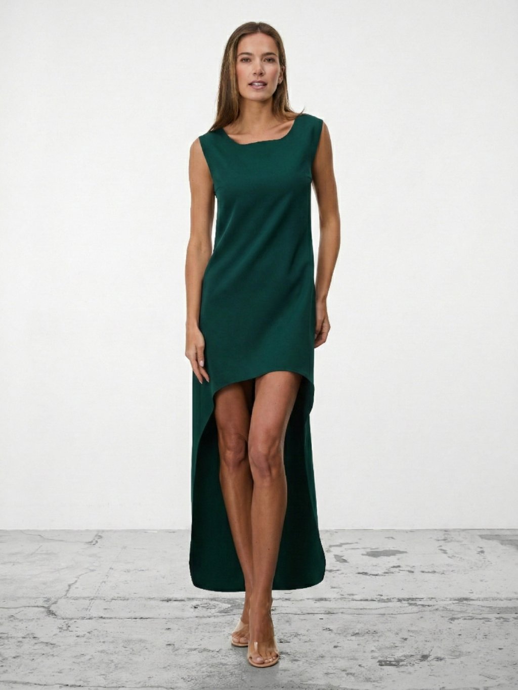 SIMPO lahvově zelené asymetrické šaty Ruby