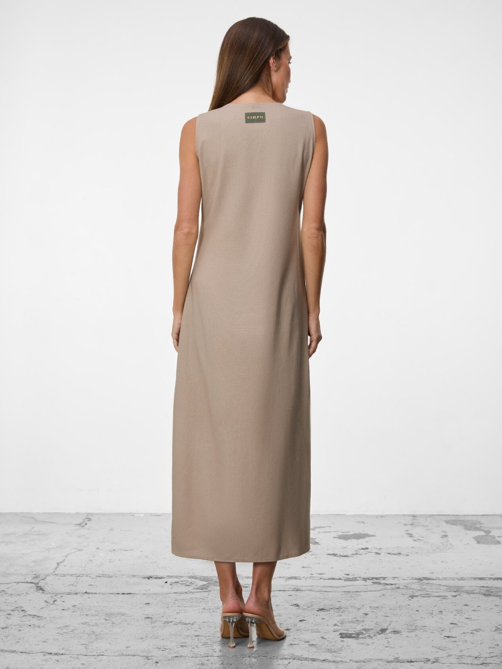 SIMPO lněné béžové šaty Solea Mar bez rukávu