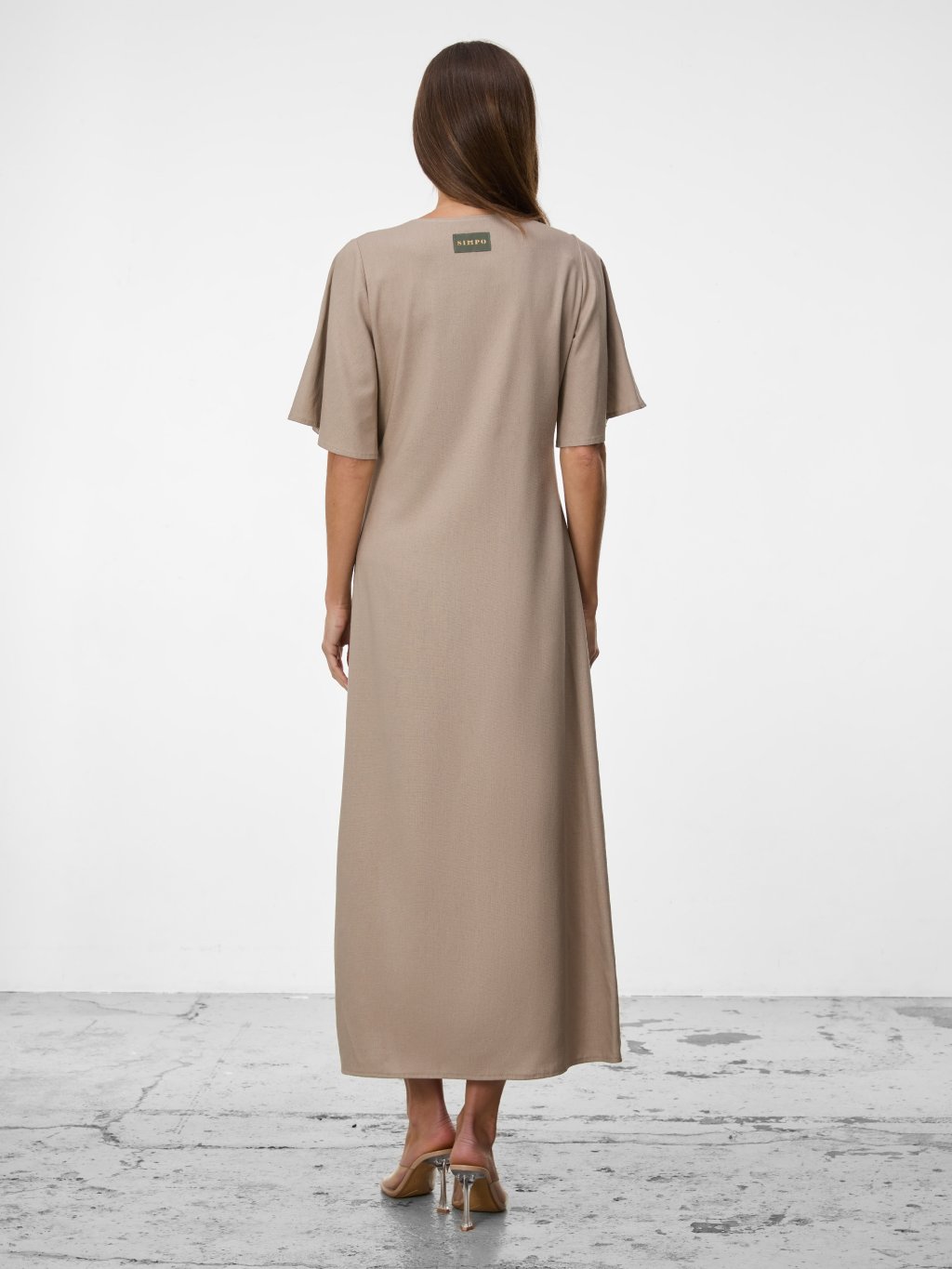 SIMPO lněné béžové šaty Solea Mar s rukávkem