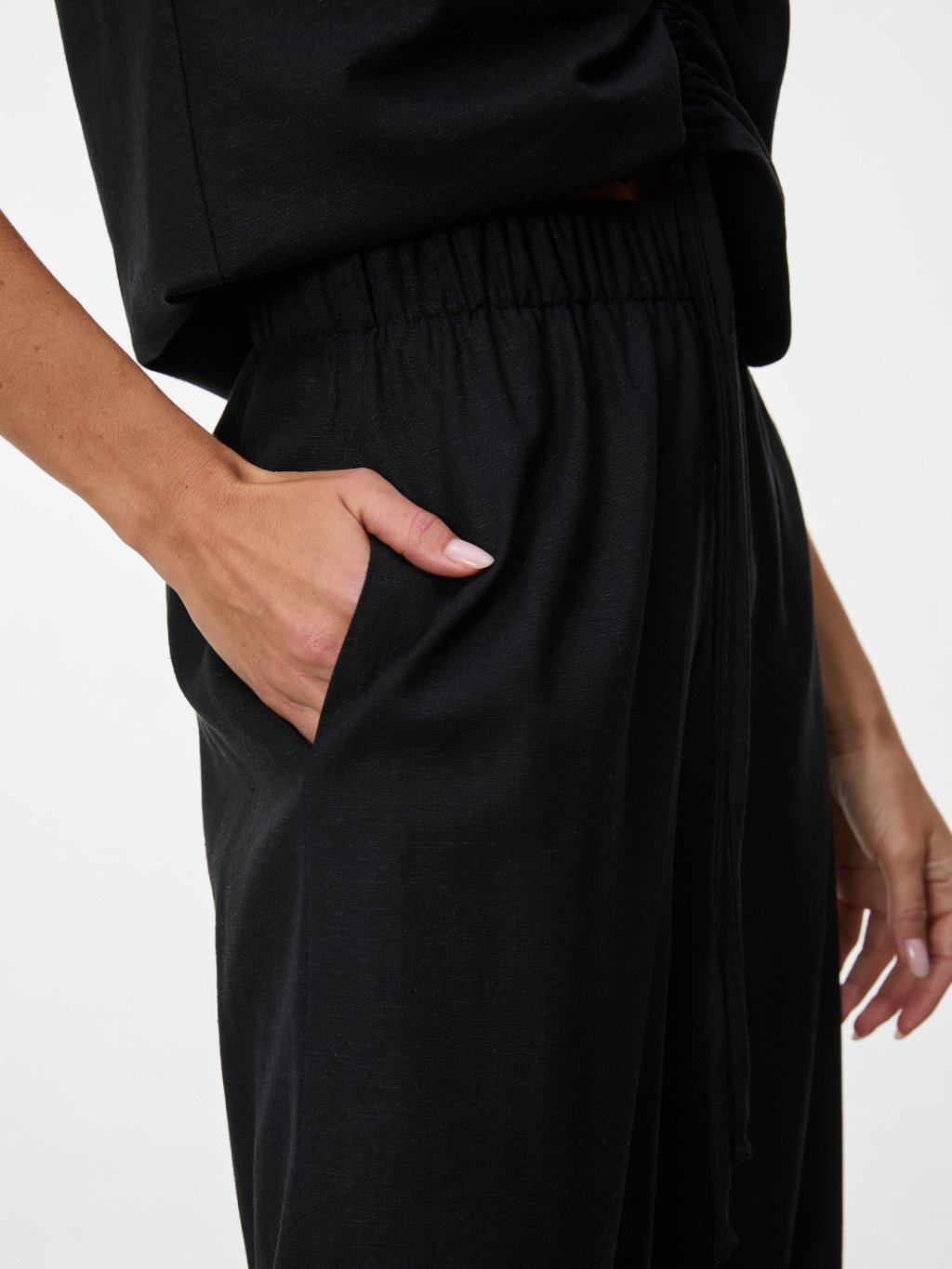 Lněné kalhoty s uvolněnou elegancí.