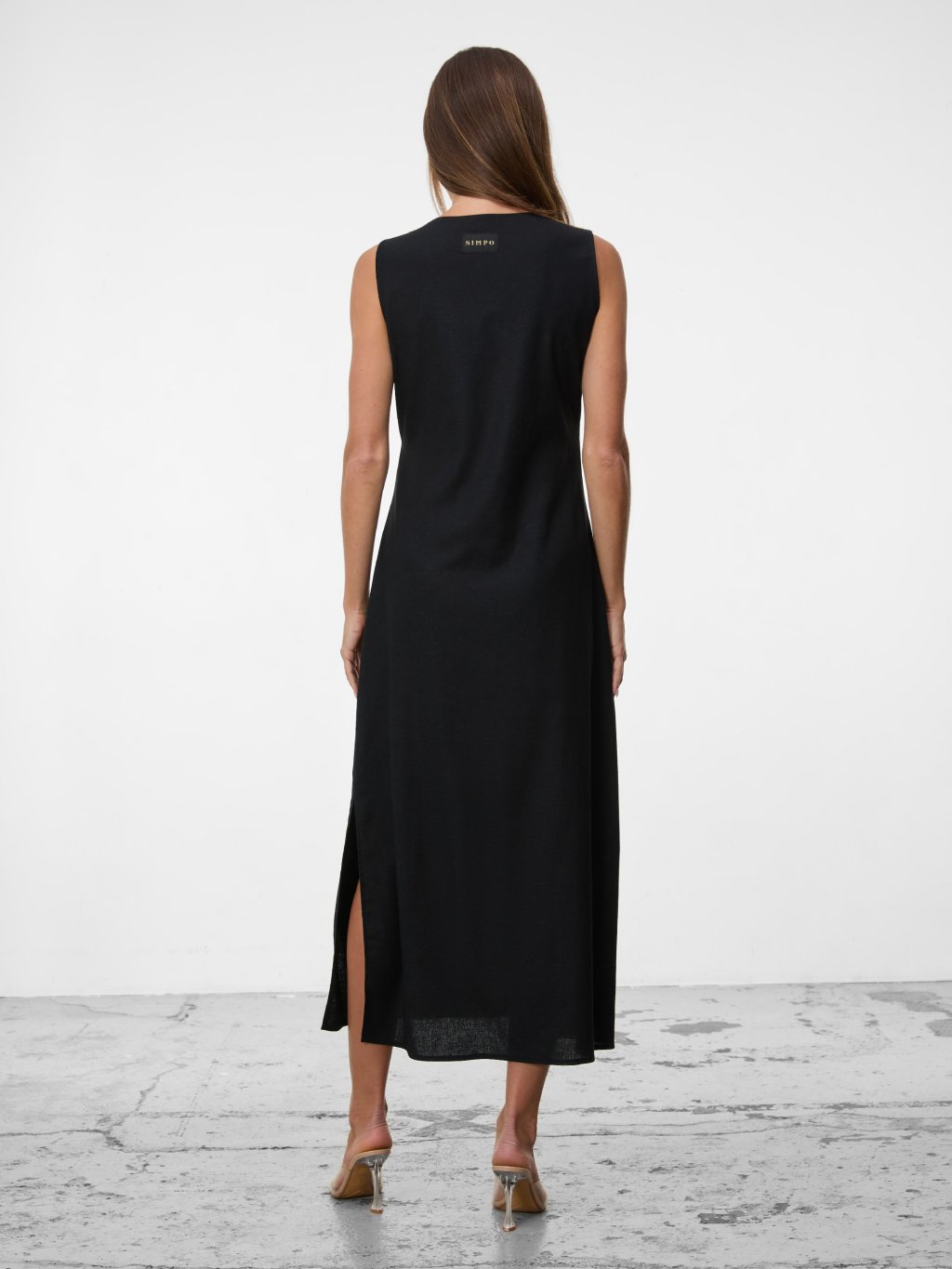 SIMPO lněné černé šaty Solea Mar bez rukávu