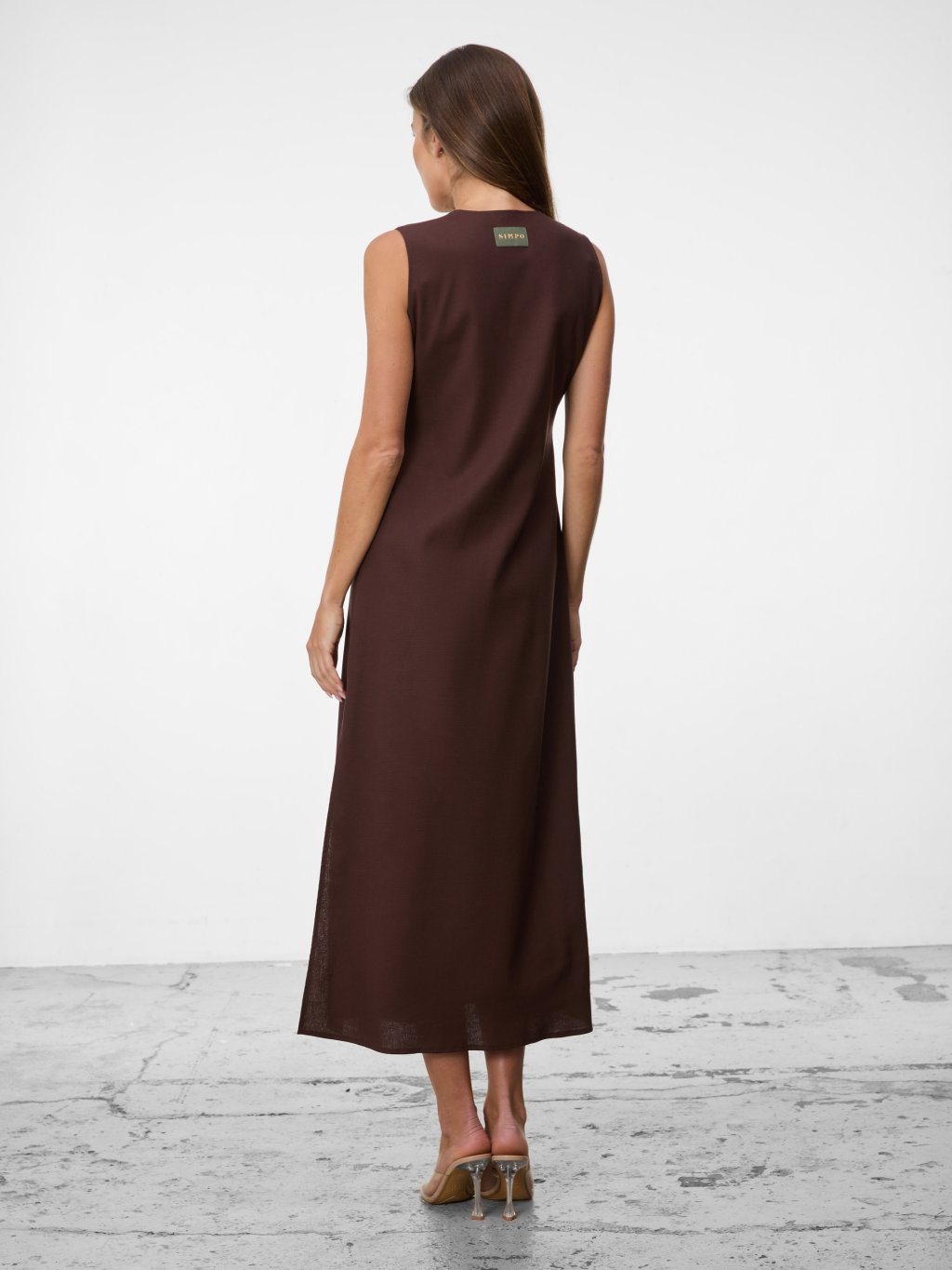 SIMPO lněné hnědé šaty Solea Mar bez rukávu
