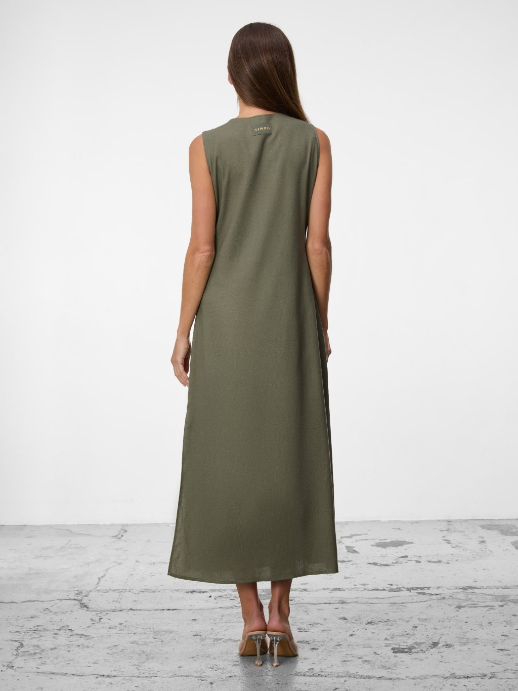 SIMPO lněné khaki šaty Solea Mar bez rukávu