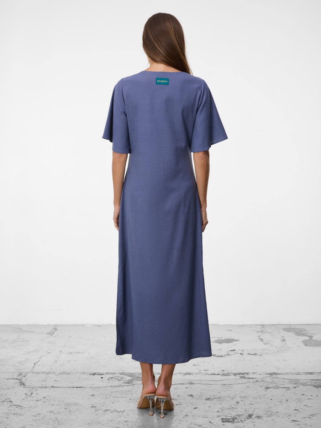 SIMPO lněné modré šaty Solea Mar s rukávkem