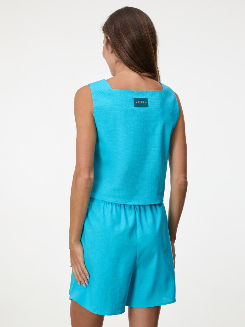 SIMPO lněný tyrkysový top Linea Mar