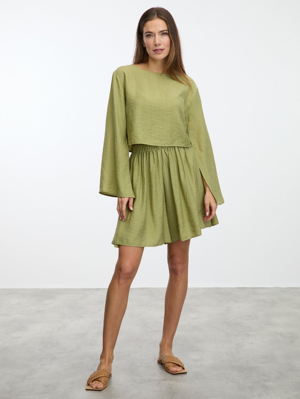 SIMPO pistáciový crop top Sands s dlouhými rukávy