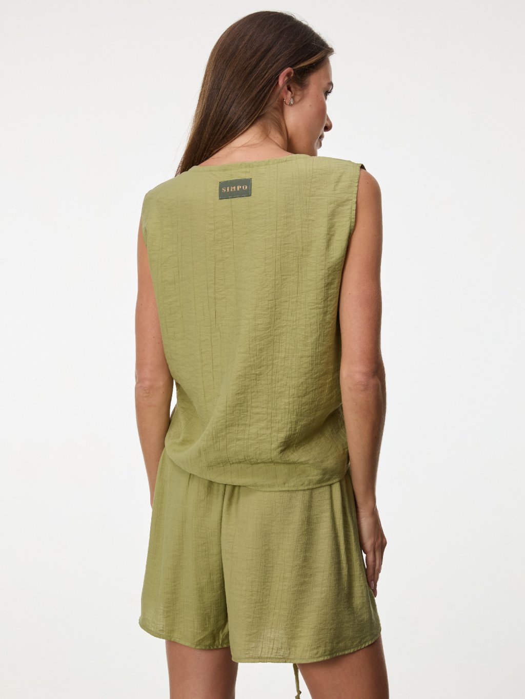 Top je součástí kolekce Sands, kterou si zamilujete pro svou lehkost, jemnost, jednoduchost a nadčasovou eleganci. Skvěle funguje samostatně i jako součást setu – na dovolenou, do města i na klidné letní večery.