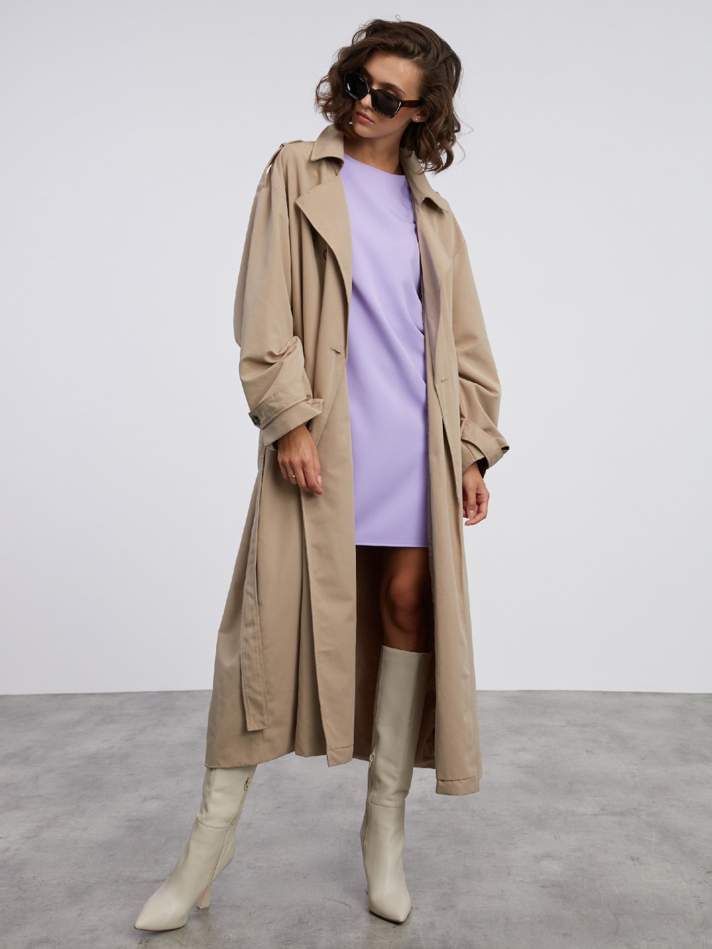 Slušivé lila šaty SIMPO s efektními rukávy.