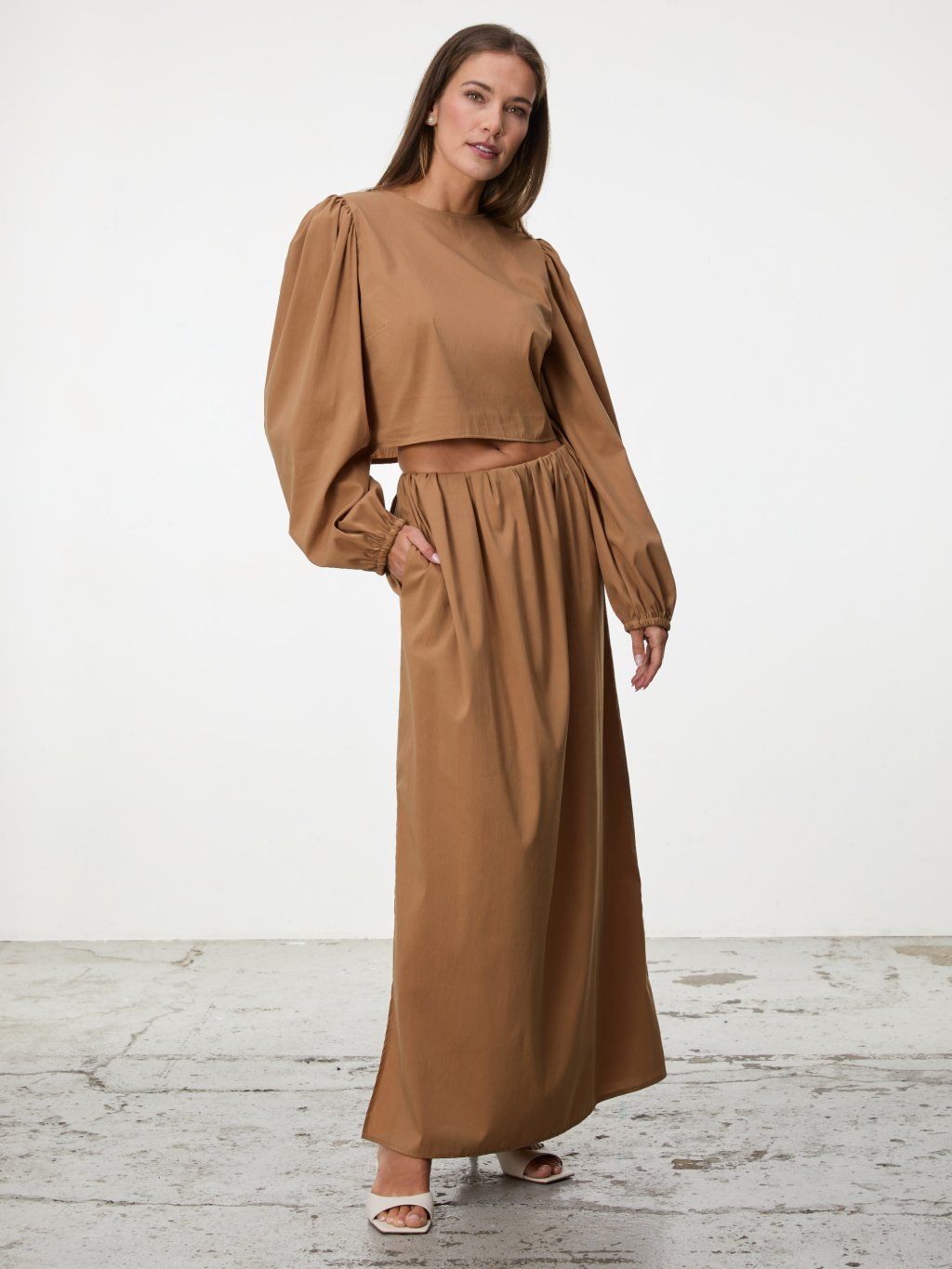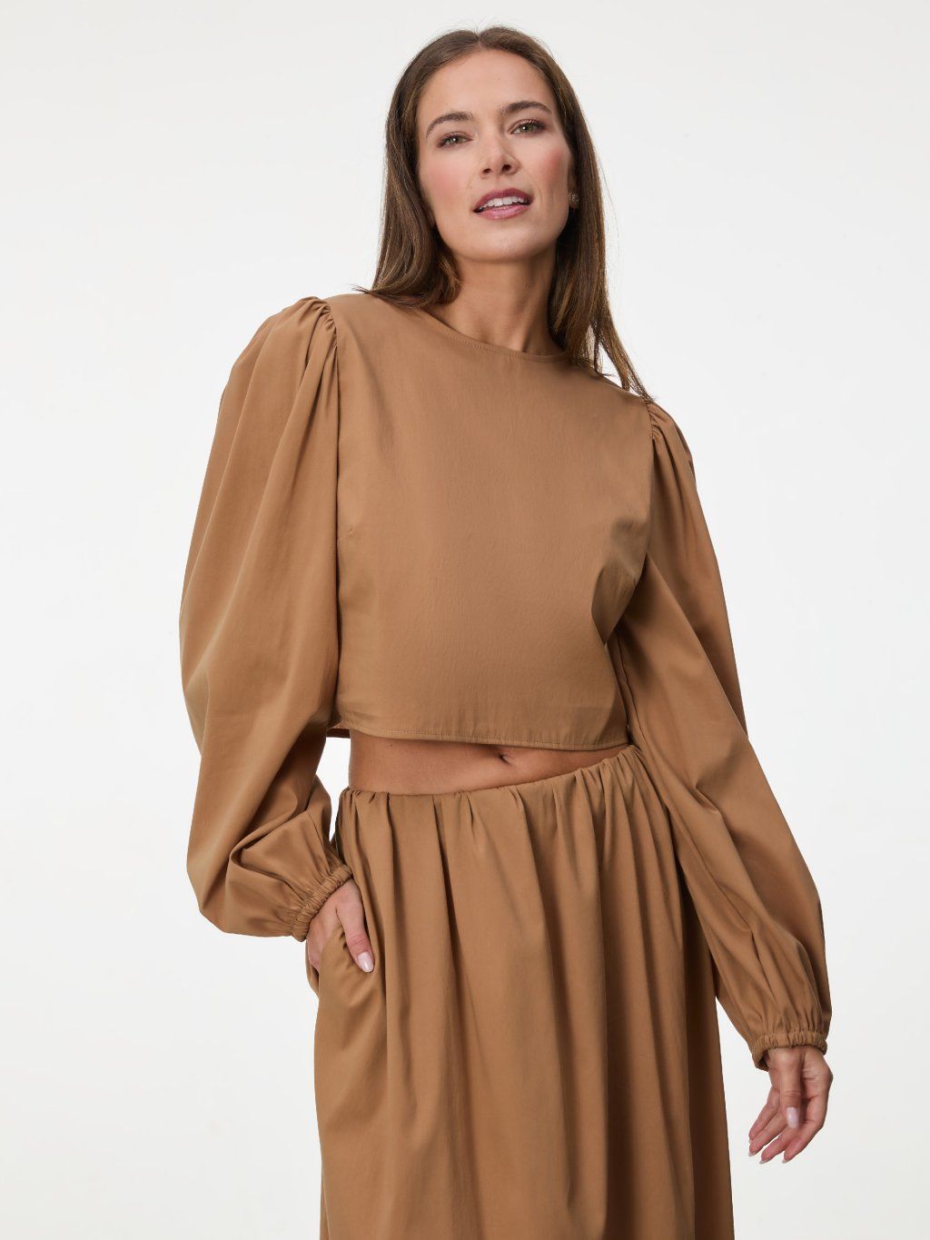 Lehký bavlněný top SIMPO ve světle hnědé barvě je esencí letní lehkosti. Kratší střih v kombinaci s objemnými rukávy vytváří moderní, ale nadčasovou siluetu. Přírodní bavlna je příjemná na těle a ideální i do horkých dní.