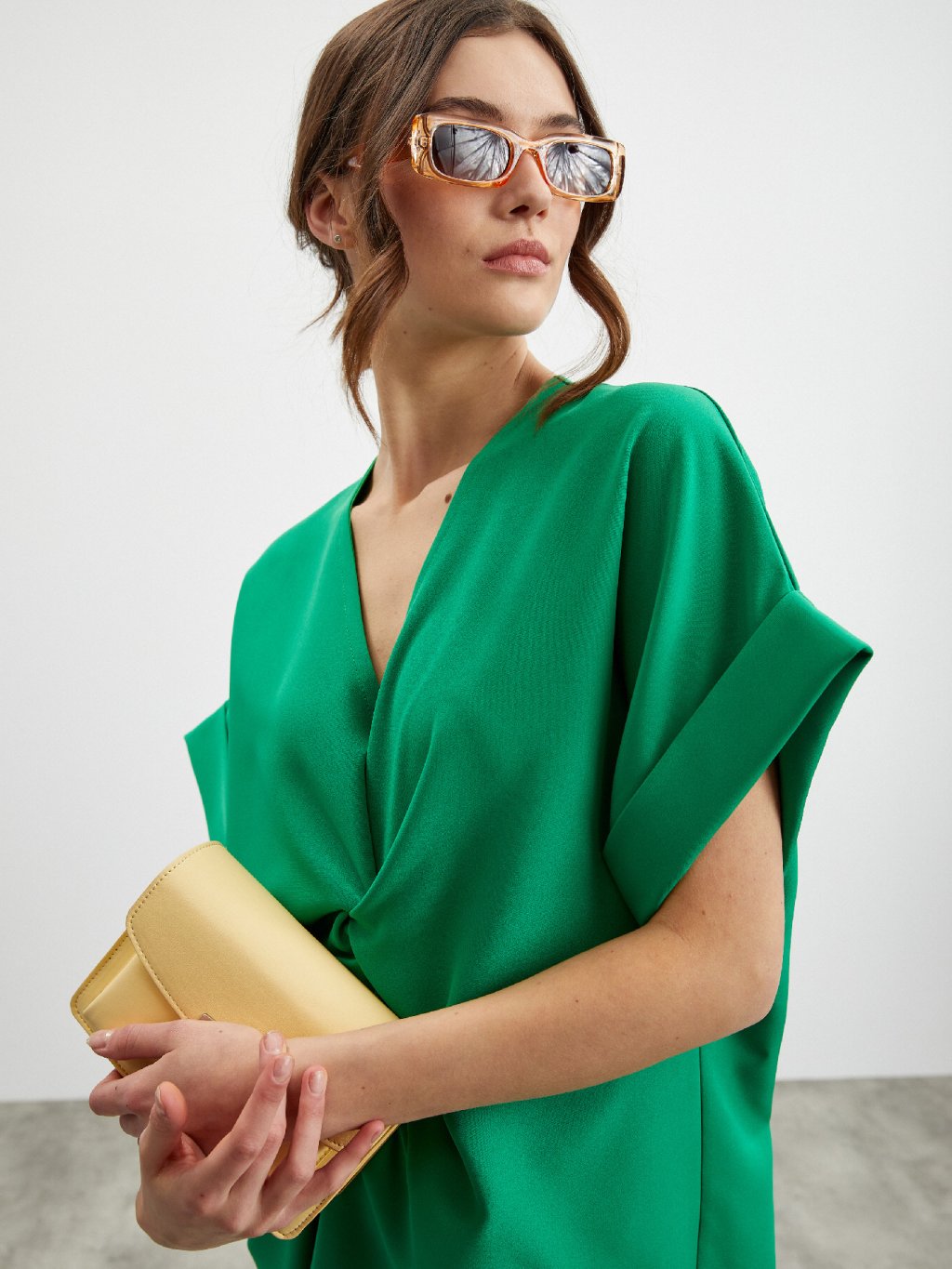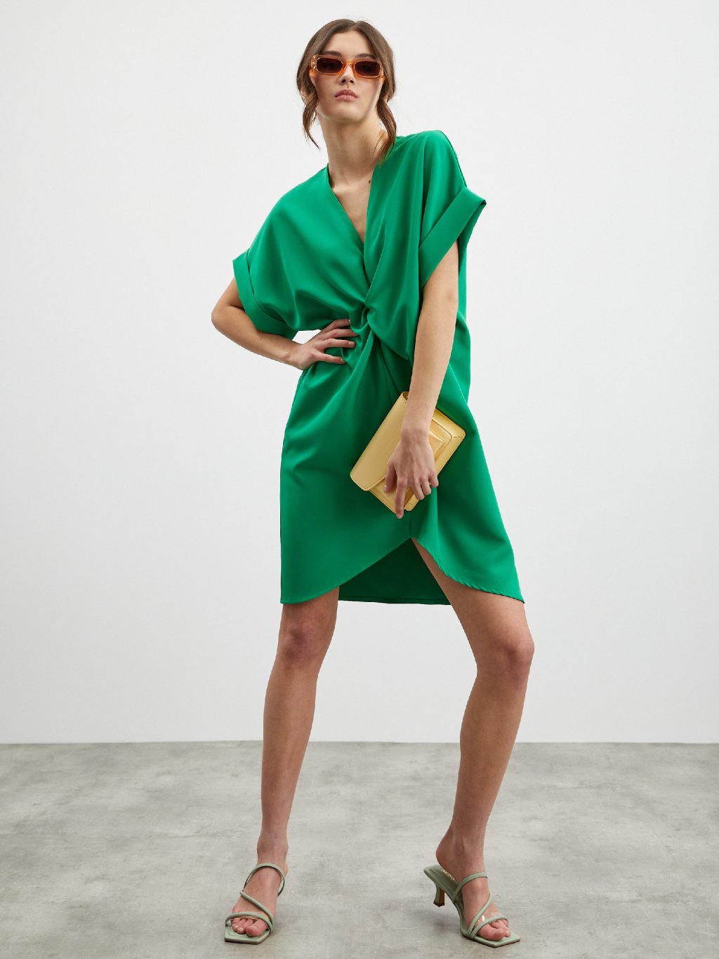 Šaty SIMPO s efektním uzlem ve výstřihu.
