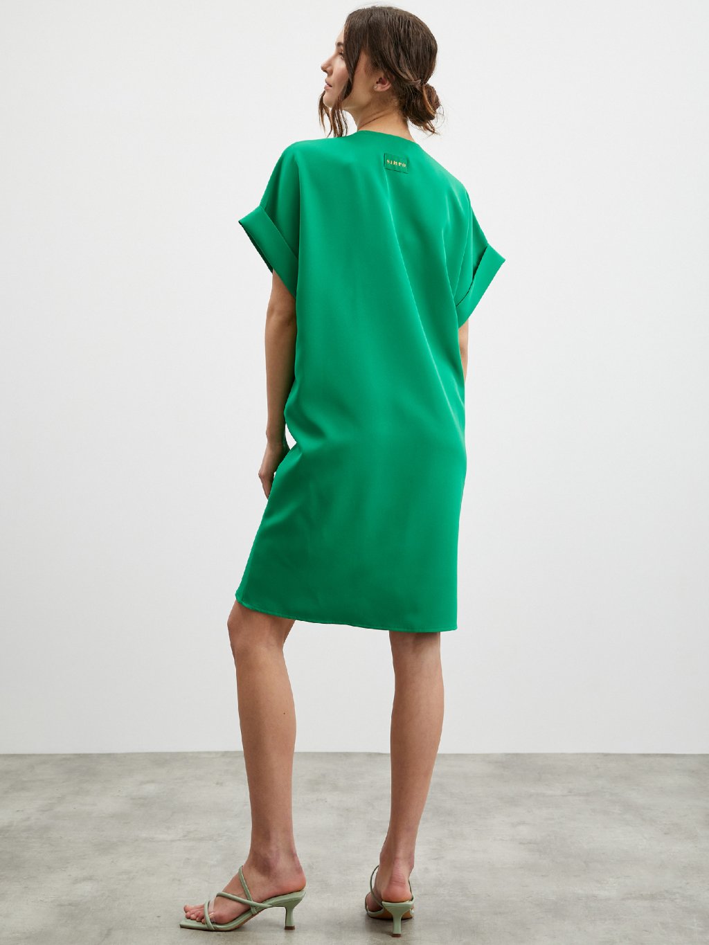 Slušivé volnější šaty SIMPO s efektním uzlem.